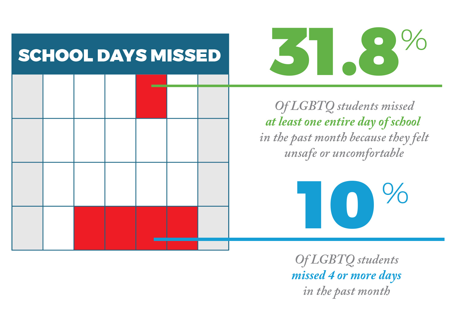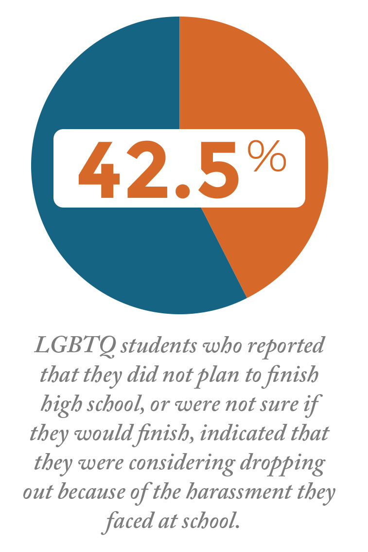 57.6% of LGBTQ students felt unsafe at school because of their sexual orientation, & 43.3% because of their gender expression.